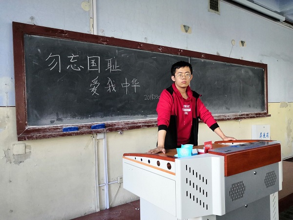 9月11日,180307团支部在 21B214中教室开展以“勿忘国耻,爱我中华,纪念九一八事变”为主题的团日活动,班长杨津涛主持本次团活,全体支部成员参加。