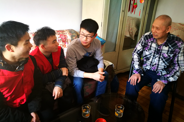 志愿者们在社区负责人带领下到达本次活动学习榜样徐经华老人家中。随后志愿者们围绕老人坐下开始听老人讲述自己的故事。徐经华老人向志愿者们讲述他的工作经历,讲述自己在建国初期服从共产党安排,在岗位上恪尽职守,之后在工作分配上自愿前往待遇差的岗位上工作的经历。老人一生为公,以党利益为重,是一位值得学习的雷锋榜样。活动的最后,老人叮嘱志愿者们好好学习,做一个甘心为国家做贡献的人。
