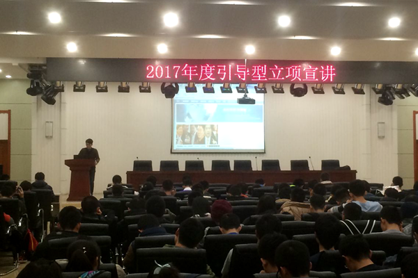 11月29日晚6时整,2017年度引导型立项宣讲于动力学院于动力楼十五楼举办。本次宣讲由科创导航员张晓宇担任主讲,大一全体同学及部分科协人员参与此次活动。