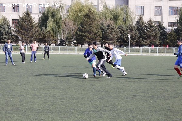同学们于军工操场集合,换好运动服装后,随后集体进行热身,本次比赛为动力足球杯决赛,比赛双方分别是大一和大三的球员。比赛过程中,大三球员攻势一直很猛,占据上风,但是大一球员也不甘示弱,双方一直僵持着。前半场,双方踢成0比0,由点球大战决出获胜方。最终比分为8比7,大三球员获得胜利。