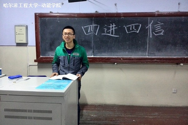 4月9日下午四点整,20130312团支部在11号楼0123教室进行了以“践行社会主义核心价值观――学习四进四信精神”为主题的演讲比赛。本次活动共有6位团员参赛,由团支书王路宇主持活动。