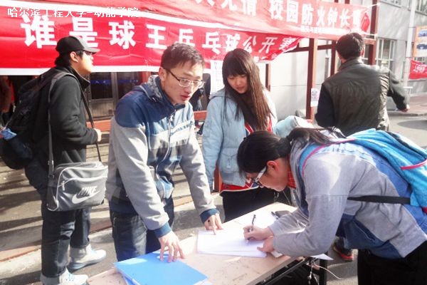 11月8日中午12时,由动力学院主办的“动力杯”谁是球王乒乓球公开赛分别在两个餐厅门前开始现场报名。素质拓展中心的负责人现场对报名的同学做详细地记录。