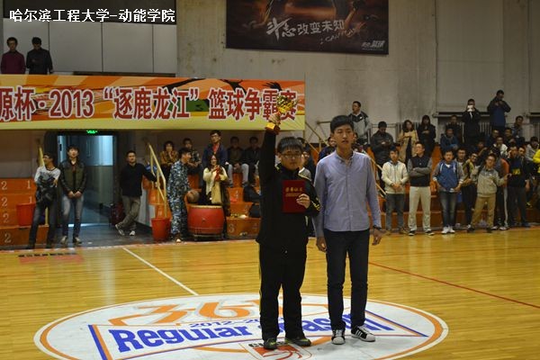 10月18日晚,2013级新生篮球赛闭幕式于体育馆竞赛馆举行。校学生会主席张益、校学生会体育部部长、动力学院学生会主席张丁山以及船舶工程学院学生会主席梁鑫出席了闭幕式,并分别为获得冠亚季军的队伍颁奖。