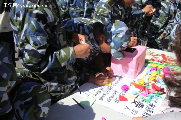 在活动开展的两个多小时里,学校大美门前活动现场人潮涌动,同学们在贴祝福语的展板前的桌上写下一句句对老师节日的祝福,大家认真地斟酌词句,希望可以用最优美的文字向自己的指导员和老师传递自己内心的尊敬与喜爱。还有很多大一的新同学,虽然还没有见到过自己的老师,但依然积极参与,将自己的祝福送给自己的教官、辅导员和未来的老师。