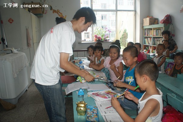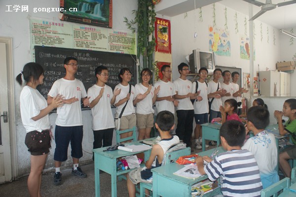 7月24日,动力与能源工程学院暑期“三下乡”实践团赴宾县部分儿童看护班进行留守儿童调查,在调查的同时,实践团还和儿童们同台献艺,唱响了大学生和留守儿童的心声和友谊,把“永远跟党走”的誓言印入了孩子们稚嫩的心灵。