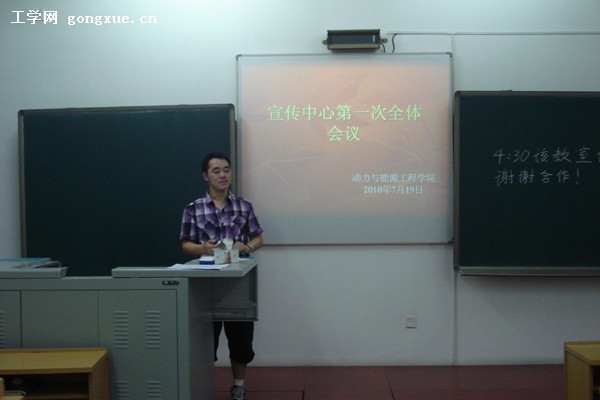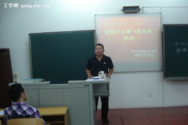 2011年7月19日晚,动力与能源工程学院宣传中心于21B 016教室召开暑期工作布置会议。会议由宣传中心主任殷耀君主持,主管宣传中心的辅导员王治宇出席会议并发言。记者团、英才编辑部、宣传部各10级部长认真听取了会议精神。会议就宣传中心工作性质、主要目标、今后发展方向等问题做出了简明规划。