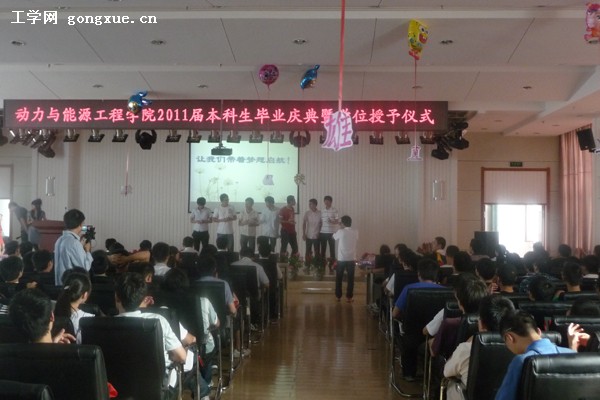 6月28日下午两点半,动力学院2011届典礼在动力楼十五楼报告厅隆重举行。出席这次典礼的有校长刘志刚,动力学院院长马修真教授,院党委书记王玉�同志,副院长李彦军同志,副院长高峰同志。学生工作办公室及教务处全体老师、部分教师代表、家长代表、2011届毕业班全体同学以及一些其他年级的学生代表参加了本次庆典。