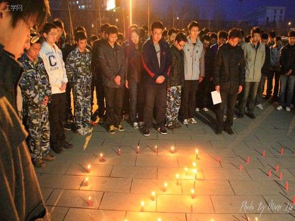 “地震无情,人间有爱”自地震发生后,玉树灾情一直牵挂着动能学院师生们的心。4月21日,这个举国哀悼的一天,在学院领导的倡导下,18点30分百余名动能学院各届学子聚集在动力楼门前,肃立垂首,为玉树地震中的遇难者举哀,为生者祈福。