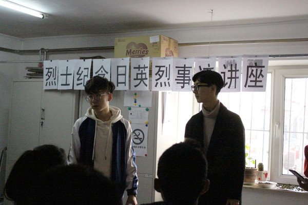 讲座中,社区负责人给同学们讲述抗日战争及解放战争时期,哈尔滨地区涌现出的一大批先进人物及其英烈的战斗故事。本次讲座着重介绍赵尚武的事迹,他出生于1920年,于1938年入党,卢沟桥事变后便参军,最后为救护战友的孩子被追击的日寇击中头部而壮烈牺牲,献出他年仅22岁的宝贵生命。听完社区负责人的介绍,在座同学们反响热烈,并向其他同学介绍自己所知道的烈士。