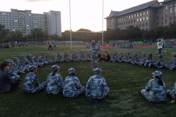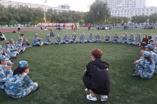 2017级新生们在结束了一整天辛苦的训练后,围坐在操场进行了一系列团体活动。贲浩然老师,李优仁老师及各班班副在军工操场协助军训教官和连副带领男生们进行“齐心协力”,蜈蚣跑,平板支撑等活动,而女生则在刘奥铖,高原等人的指导下于南体育场完成了“滚雪球”,跳兔子舞等游戏,场面十分活跃,操场中洋溢着欢声笑语。在活动进行期间,教官、连副、辅导员等人对这群刚进入大学生活的新生们嘘寒问暖,对他们的生活适应情况及身体状况表示关心。活动持续约一小时,在大家齐声合唱《朋友》的歌声中,此次团体辅导活动落下帷幕。