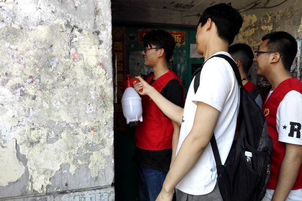 341班团支书张祖妍和342班团支书孟庆钰主持本次品质团活。活动现场,两班同学们向哈工程师生们发放绿色行动宣传单,讲解什么是绿色行动,并且呼吁大家积极参与活动。当天下午,报名参加绿色行动的同学们以及动力学院青年志愿者们一起去华北社区清理社区。同学们不顾炎热的天气和遥远的路程前来参与劳动。短短的几个小时,同学们不仅清理了楼道和墙上横飞的小广告,又打扫小区各处的卫生。