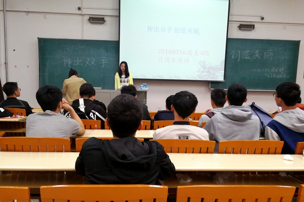 5月1日晚上7时整,20160316团支部于21b111教室举办以“伸出双手,创造美丽”为主题的品质团活。20160316团支部全体成员参与本次活动。
