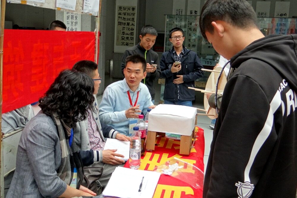 依据各院系“启航杯”初赛答辩情况,经过打分、系统检测,评出442件进入终审展示环节,其中创意科普类182件,创意概念类190件,哲学社会科学类70件,参赛率的提高,不仅表现出学生在科技创新、动手能力上的广泛热情,也反映了学校各级领导、各级机关对学生科技创新工作的大力重视。比赛过程中,动力学院学生表现出色,参赛同学依次上前,为评委们讲解各自立项作品的创新之处。他们详细介绍作品的性能、结构及用途。评委们认真听取每位参赛选手的陈述,询问各个细节,对作品中存在的不足提出建议,对作品中的创新点给予肯定。