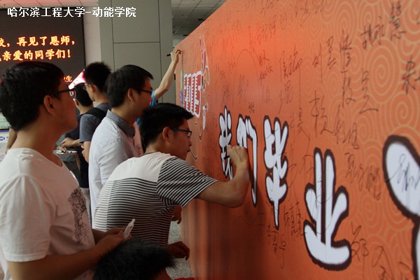 大会开始前一个小时,一些毕业生便陆续来到现场。会场门口准备了大型的签名板,以供毕业生签名、合影留念。同时,大会开始前,活动现场开始播放一些为毕业生特别准备的视频和音乐,以活跃场下气氛。18时30分,大会正式开始。在嘹亮的国歌声后,动力学院党委书记彭宗德开始宣读毕业生名单。随后,活动以视频的形式将15级毕业生大学四年来的学习生活进行了回顾,在一张张照片和轻快又忧郁的背景音乐中,大会气氛被推向了高潮。