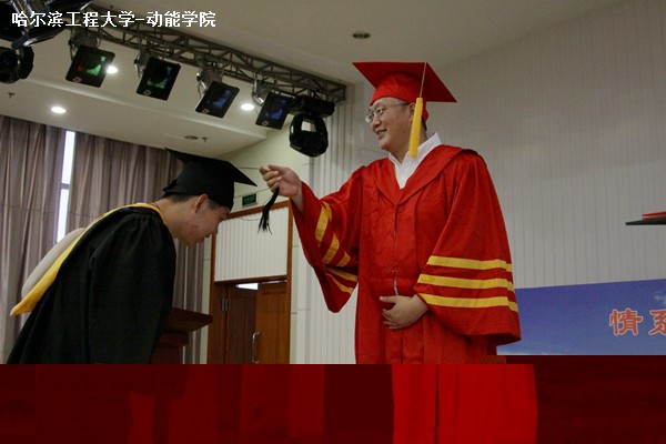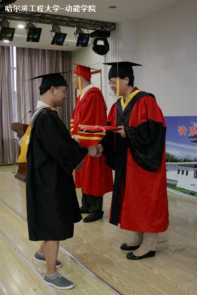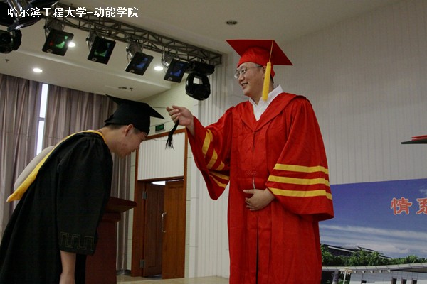 大会的主要任务是为毕业生颁发学位证书。回顾视频后,哈尔滨工程大学副校长赵琳、动力学院副院长李淑英身着校长服和院长服,与每一位毕业生握手、颁发证书并合影。最后,赵琳教授来到台上,为本次大会致辞。他对在场的所有毕业生说,大学毕业是人生的一个起点,是步入社会或是走向更深研究领域的一个开始,无论毕业后的去向,所有人都是哈尔滨工程大学的骄傲。他还强调,大学毕业是大家从学生到校友的转变,希望各位毕业生在以后的日子里能常“回家看看”,回报母校。