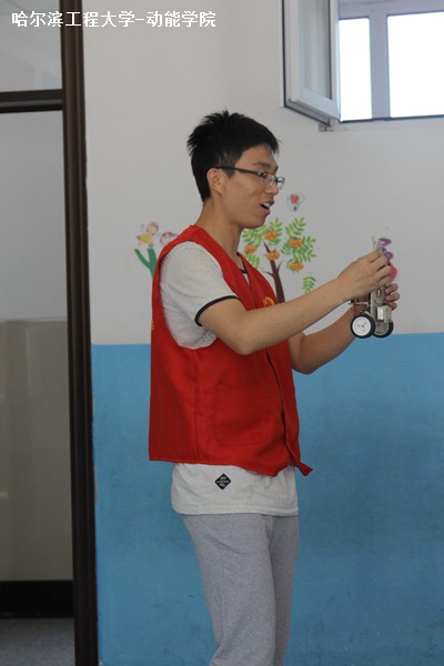 科普讲座中,志愿者拿出了一些在大学中的科创作品,以风趣幽默、朴实易懂的语言与孩子们分享科学带给人们的乐趣。讲座后,孩子们还饶有兴趣的拿起作为教具的科创作品,向志愿者们提出自己的疑问。对于孩子们的问题,志愿者们耐心听取并解答。虽然问题并不复杂,但提问的过程还是反应了孩子们热情积极的学习态度。