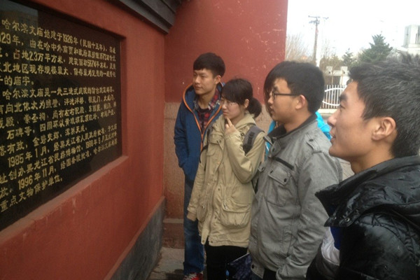 4月25日下午四点,动力学院20120314班全体同学由团支书孟睿组织,走进了黑龙江民族博物馆-――文庙,让大家感受到了民族文化的精髓。