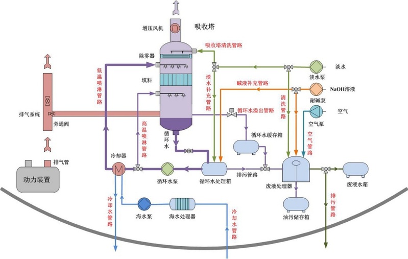 船舶废气脱硫实验台是用于脱除船舶动力装置排气中硫氧化物的系统。