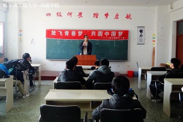 11月4日上午8时30分,20120313班全体同学在团支书的组织下于动力楼313专教举行了以“放飞青春梦,共圆中国梦”为主题的团日活动。本次活动的目的在于加深同学们对于“中国梦”的理解,明确自身的奋斗目标即“青春梦”,为将来更好地投入到社会主义现代化建设打下一个良好的基础。