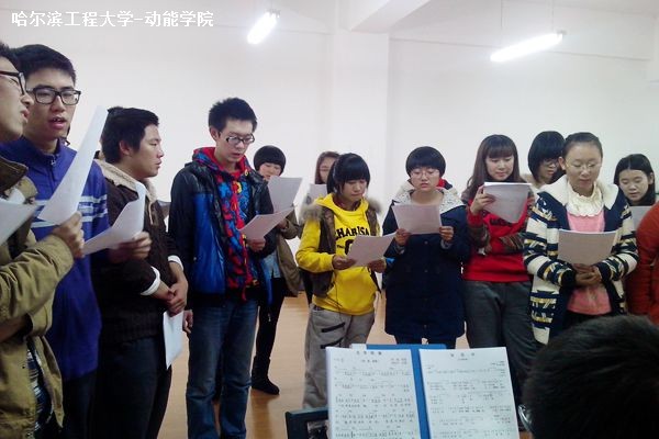10月31日中午12时30分,动力学院文艺部组织大一同学于启航活动中心330教室进行大合唱排练。文艺部部长邢雪,以及各个副部长在现场进行指导。所有参加合唱的同学到场参加本次排练。