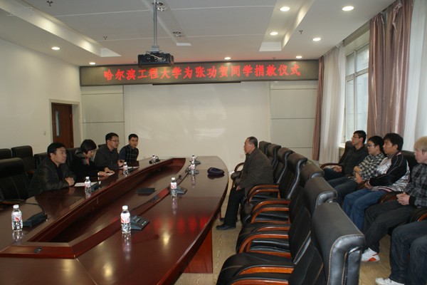 3月25日下午,我校为张功贺同学举行的捐款交接仪式在动力楼二楼会议厅举行。学生处副处长夏宝慧、动力学院党委副书记丛建伟、材化学院党委副书记付洪波及张功贺家属出席了仪式。