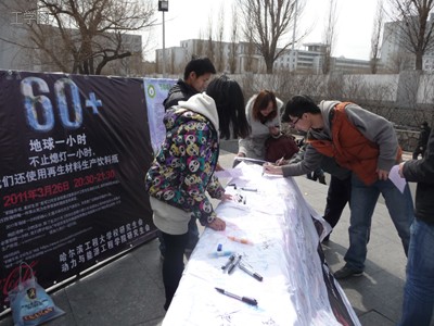 “倡导绿色生活,构建低碳未来”是改善生活环境、造福子孙后代的一项长久而艰巨的任务,为此,3月25至26日,动力与能源工程学院研究生会在美食城门口举行“地球一小时”签名活动。