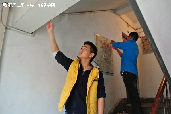 10月11日下午3时整,动力与能源工程学院部分大一、大二的同学们,在系青协主席暴钰的带领下,来到华北社区志愿清理楼道墙面上的小广告。