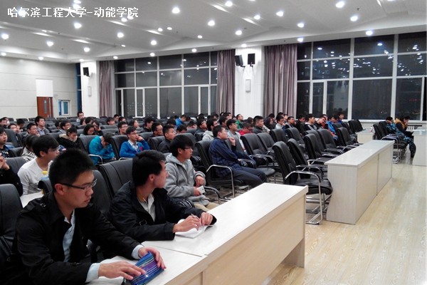 会上,首先由杨龙滨副教授发言,他围绕着船舰蒸汽动力系统的相关知识向大家介绍了动力学院热能工程专业的研究领域及就业优势等内容。接着,郑洪涛教授又向大家介绍了燃气轮机专业的相关情况,他为大家详细分析了国内高校对于燃气轮机的研究水平以及我院本专业在其中的位置等。最后,李玩幽教授向大家介绍了柴油机、轮机工程这两个专业的相关情况,他从这两个专业的本科生培养模式与研究生培养模式等方面向大家说明了动力学院这两个专业的独特优势。整个会议过程,同学们认真听讲,秩序俨然。
