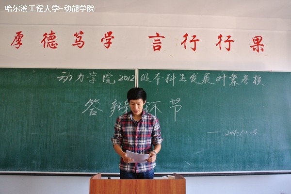 10月16日中午12时40分,动力学院12级发展对象考核工作在动力楼341专教进行。团委书记陈楠老师作为评审老师参加了本次考评。