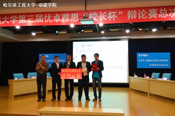 最后,由魏�同志为“动力一号”代表队颁发荣誉证书和纪念品。本次辩论赛再次彰显了动力学院辩论队的风采,极大鼓舞了队员们的士气。