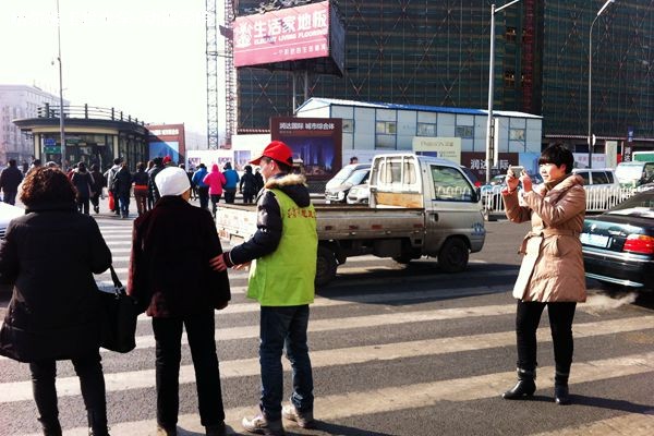 上午10时整,志愿者们和社区工作人员到达指定路段开展活动。首先,志愿者们和社区工作人员对红灯时行人横穿马路的行为进行了制止。志愿者们拦下正准备横穿马路的行人,就红灯时横穿马路的危险性做了详细讲述,说明了这种行为的危险性和横穿马路行为对社会治安的危害,劝解他们珍爱生命,维护社会治安,从日常的每一次过马路做起。同时号召行人向身边的亲朋好友进行宣传,以点带面,为共建和谐城市贡献自己的一份力量。在进行文明向导的同时,志愿者还帮助了几位行动不便的老人过马路,向来往行人传播了一种正能量。