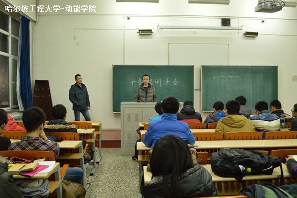 11月24日晚6时30分,动力学院组织考核中心于21b104中教室召开学生干部培训大会。本次培训旨在增强学生对学院考评制度的了解,以及更好的做好班级各项工作,2011级、2012级、2013级各班的班长和团支书以及组织考核中心所有成员参加了此次会议。
