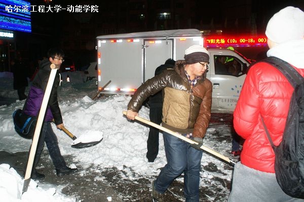 20110314班马宇晨同学参加了本次扫雪活动,他表示“哈尔滨最近持续降雪,一方面给车辆交通和行人行走带来了很多困难,许多同学不慎滑倒。另一方面,大雪给环卫工人的清雪工作带来了很大的压力。作为一名大学生志愿者,我们应该做一些力所能及的事情”另一位志愿者,20120315班贾子秀同学说“虽然天气寒冷,但是同学们在一起劳动依然非常快乐。尤其是看到了自己努力有了成效,心里的成就感和幸福感就会油然而生。”