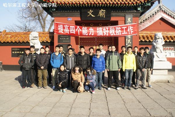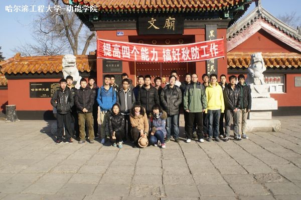 11月14日上午8时整,20120313班全体同学在团支书的带领下来到了拥有八十多年历史的哈尔滨文庙,开展本次以“传承中华文化,启迪智慧人生”为主题的团日活动。本次活动的主要目的在于让同学们对于博大精深的中华文化有一个更深层次的了解,激发同学们对于中华文化的学习热情,并通过今后的不断积累最终使每位同学拥有更加深厚的文化底蕴,做一名“文武兼备”的军工传人。