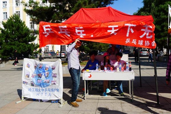 哈尔滨九月中午的太阳依然炙热,同学们不畏烈日,坚持在广场上。参加此次招新活动的社团既有体育方面的乒乓球协会、哈工程滑雪协会;又有科创方面的SAE小车俱乐部;还有陶冶情操的棋类协会及微电影协会。其中微电影协会等是今年刚创建的社团。