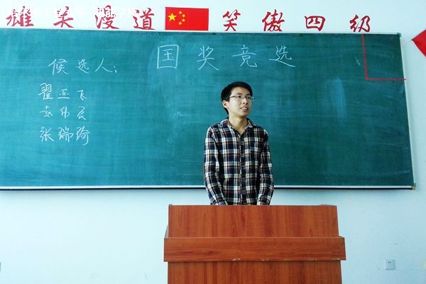 本次奖学金的评定工作从国家奖学金开始。首先是主持人宣布竞选开始,然后主持人宣读竞选流程及竞选准则(评委、竞选者均在),举行抽签仪式(完后竞选者退场至候选教室),各竞选者依次竞选(期间评委老师可以提问)评委投票,最后组织人员收取选票并组织唱票验票(验票为大二同学),依据票数从高至低择出三名获奖同学。每个年级都有六个候选人进行参选,按照抽签的顺序进行申请讲演。参选的同学分别从学习,生活,科创等方面总结了上一学年的所学所得,条理清晰的阐释个人的优势所在,充分展示了作为动力学院优秀学子的风采。