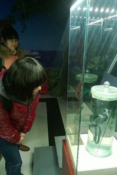 同学们先后参观了多个展厅,每个展厅都有自己独特的主题,出土于黑龙江的动物化石,原始动物模型等都让同学们眼前一亮;被展出的年代久远的字画更是用不同的风格展示了中华艺术的博大精深;生活在黑土地上的动物,比如展出的形形色色的蛇,让同学们对这一地区的自然风貌提起了浓厚的兴趣。各种藏品相互呼应,生动地反映了生活在这块黑土地上的先民与中原地区政治、经济、文化的多方面联系与交流,以及当今社会飞速发展的风貌,同学们都深感获益匪浅。