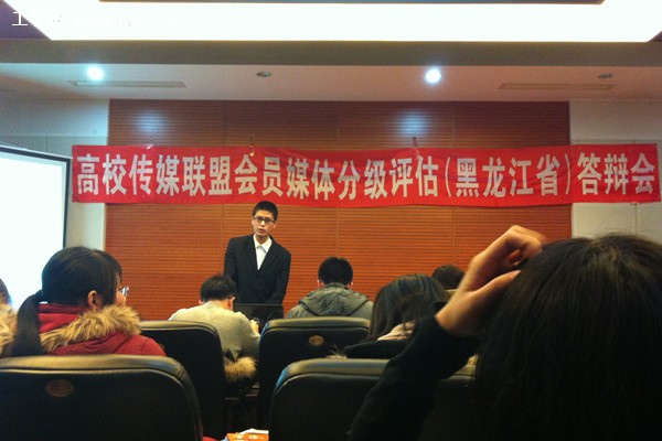 2012年12月8号,“中国高校传媒联盟会员媒体分级评估(黑龙江省)答辩会”在启航活动中心渤海厅顺利进行。此次答辩会中,哈尔滨市共有八家校园媒体参与评估(其中《哈尔滨师大报》和人文学院团委记者团缺席),其余六家分别是哈尔滨工程大学《青春校园》编辑部、《大学生科创学刊》编辑部、动力学院《院英才报》编辑部;哈工大研究生编辑部;东北农业大学《芳菲园》编辑部、《东农学子》编辑部。本次评选过程分为网络自评问卷填写、现场答辩和寄送参评申请表三部分,评审小组由中国高校传媒联盟理事单位的六家会员媒体代表组成,现场对各校园媒体答辩进行提问并核实自评问卷真实性,给出评审理由及合理化发展建议。自评问卷得分达到65分并通过主席团评审组核实的校园媒体,即可获得“三星级会员媒体”称号。所有被评选为三星级媒体的校媒单位可以申请5000元校园媒体发展基金,来加强媒体内容建设、提高团队水平、提升业务能力,使会员媒体得到更好的发展。