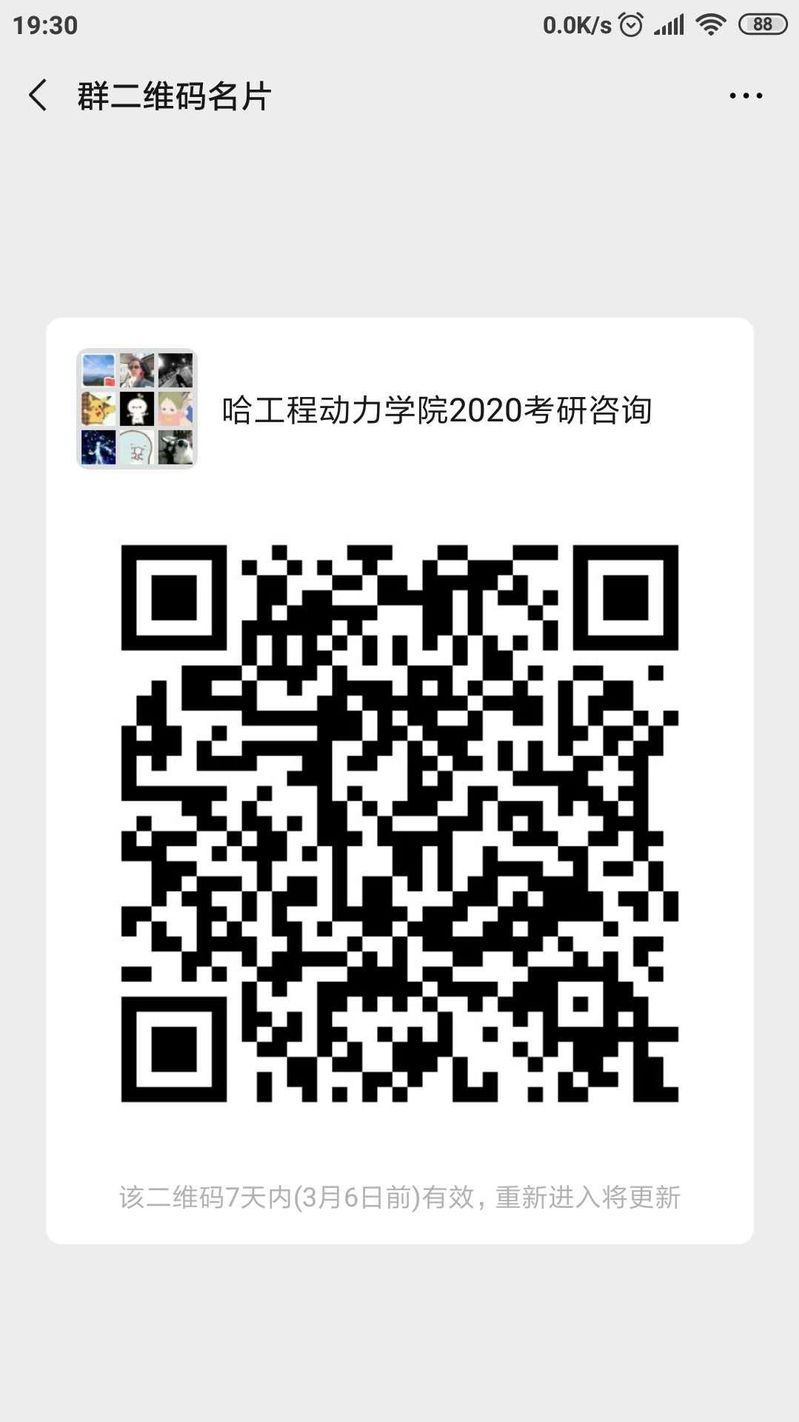 欢迎大家报考哈尔滨工程大学动力与能源工程学院,为方便大家咨询,学院建立了微信群,请大家扫码进入,学院将在国家线和相关政策出台后在群里发布并回答大家关心的问题。另外,学院咨询电话:82569310(疫情期间,按国家和省市、校相关政策要求安排上班时间,建议微信群里咨询)。